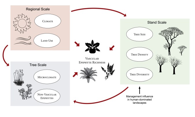Some epiphyte species may be more sensitive to climate and land use changes than others. These changes may also affect overall epiphyte species richness. I found evidence that vascular epiphyte diversity is closely linked to bryophyte cover and bryophytes are in turn highly sensitive to climate. Predicted future climate changes in the montane forest regions of Nicaragua could result in cascading losses of vascular epiphytes as bryophyes decline in a warmer and drier climate. Land use changes from forests to more open environments may exacerbate these patterns.